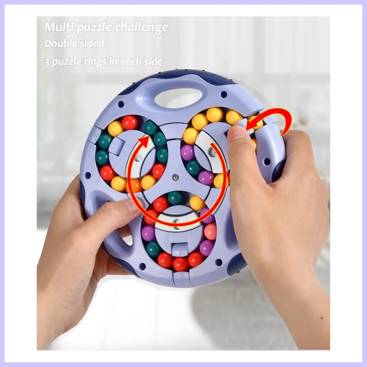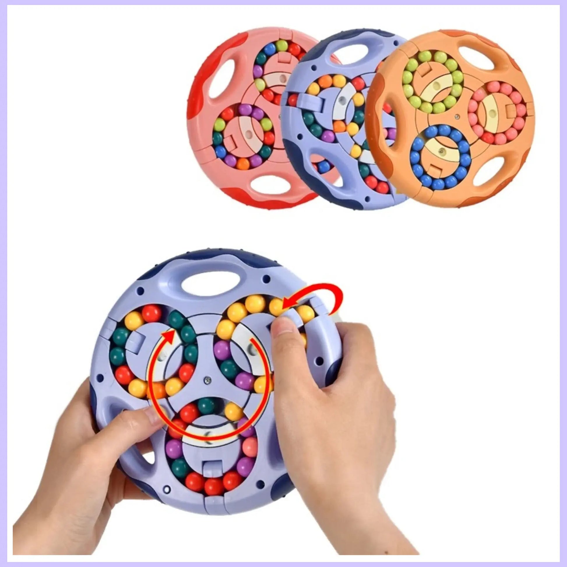 This vibrant puzzle helps improve spatial reasoning, problem-solving, and dexterity. Kids, teens, and even adults canāt resist the challenge! Once scrambled, players must rearrange the colored beads until all six sections are uniform againālike a Rubikās Cube with a sensory twist.